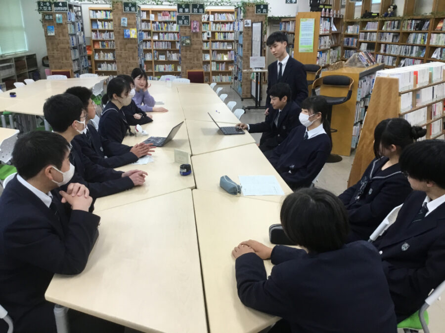 2025年11月27日図書委員会_高梁中学校と本校の生徒おすすめ本交換ー学校図書館同士で連携しています!