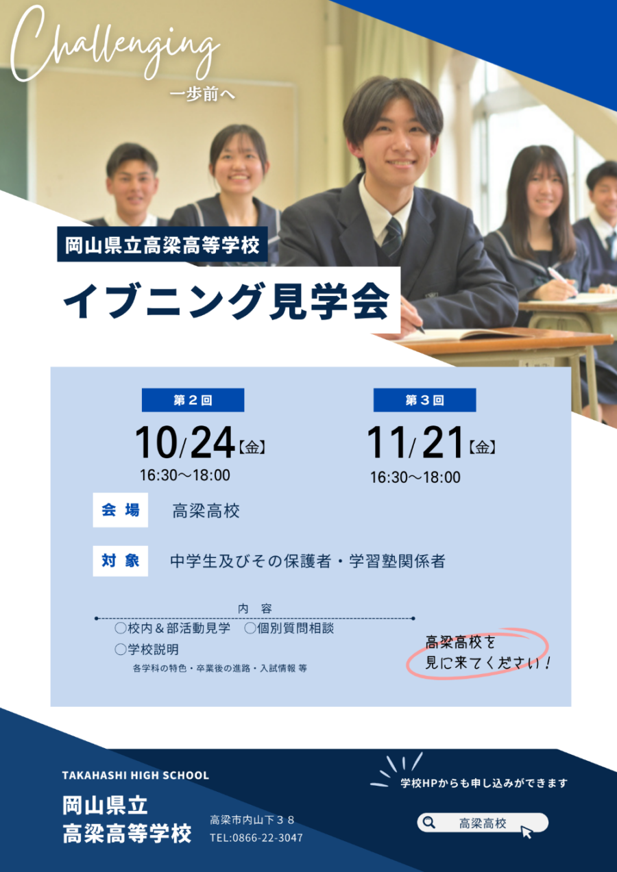 2025年9月29日参加申込みスタート!_第2回イブニング見学会 10/24(金)、高梁高校のリアルを体験!