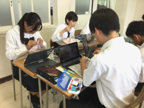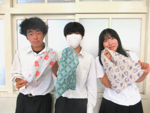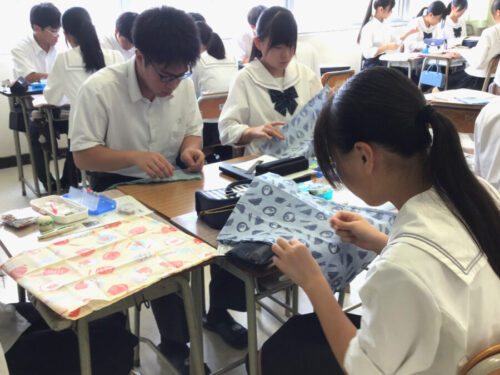 授業風景_普通科1年次「家庭基礎」、手ぬぐいから世界にひとつだけのエコバッグを作成!
