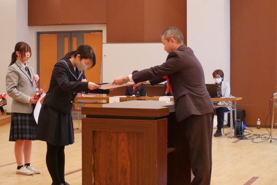 上位入賞を果たしたことで、来年度7月に秋田県で開催される全国高等学校弁論大会に出場することが決定しました。本人は「本当に私が?」と驚いた様子で、「評価にこだわらない」というテーマで語った自分の言葉が評価されたことに、少し照れくさそうにしながらも素直に喜んでいました。