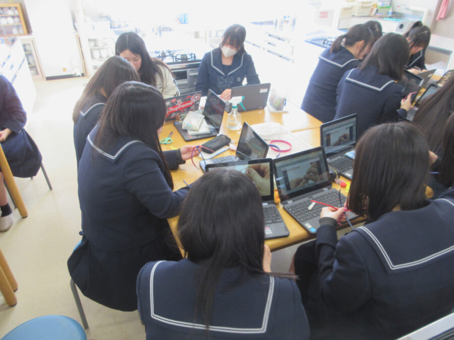 3月4日(水)、家政科2年次生の特別授業で「クラフトバンド」に挑戦し、花の形のストラップを制作しました。