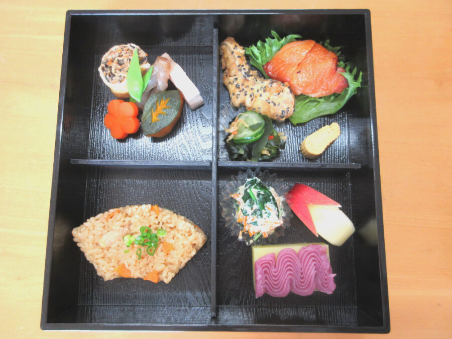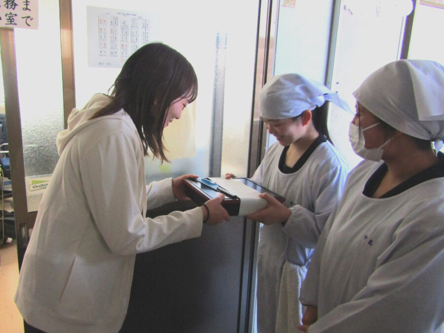 完成した松花堂弁当は、事前に購入してくださった先生方へ。受け取った先生からは、温かいお言葉をいただき、生徒たちも思わず笑顔に。自分たちの努力や工夫が誰かの満足につながる喜びを実感する、とても充実した時間となりました。学んだ知識を実際に形にし、誰かに届けるという経験は、きっとこれからの生活にも大きな財産になるはずです。