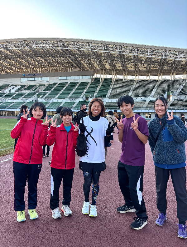 12月6日(土)、JFE晴れの国スタジアムにて、株式会社天満屋ランニング事業部主催の 福士加代子さん「ジュニア中長距離特別教室」 が開催されました。冬晴れのさわやかな空の下、本校からは3名の生徒がこの貴重な教室に参加しました。