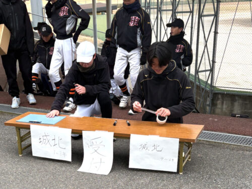 当日は約70人の小学生が参加し、グラウンドはとてもにぎやかな雰囲気に包まれていました。高校生が小学生と一緒に体を動かしながら、楽しく野球に触れてもらえるよう準備をしてきました。アップでは、走ったり動いたりするメニューや増え鬼を行い、少しずつ体を温めました。最初は少し緊張している様子もありましたが、だんだんと笑顔が増えていきました。キャッチボールでは、相手を見て投げることやボールの取り方など、基本を大切にしながら高校生がそばで声をかけました。小学生が「できた!」と嬉しそうにする姿がとても印象的でした。