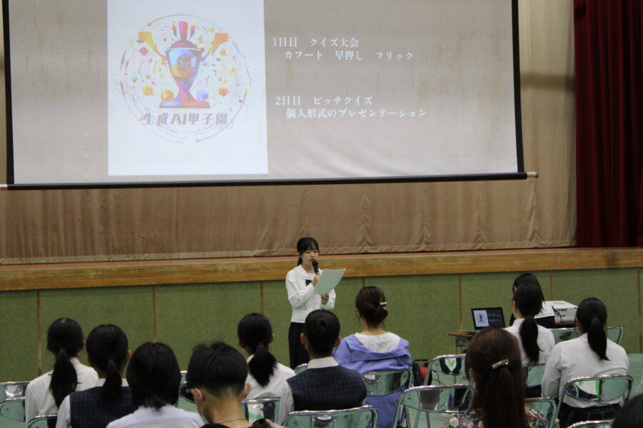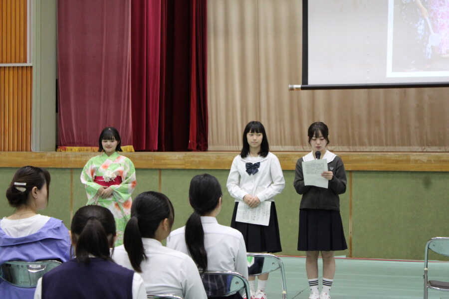 家政科の生徒たちは、学科での取り組みを紹介するとともに、地元企業と連携して制作したオリジナル浴衣を披露。普通科からは、「やりたいことができる学校」という切り口で、実際に生成AI甲子園に参加した生徒が、その体験を発表してくれました。