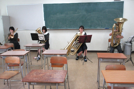全体会のあとは、普通科と家政科に分かれて校内見学を実施。