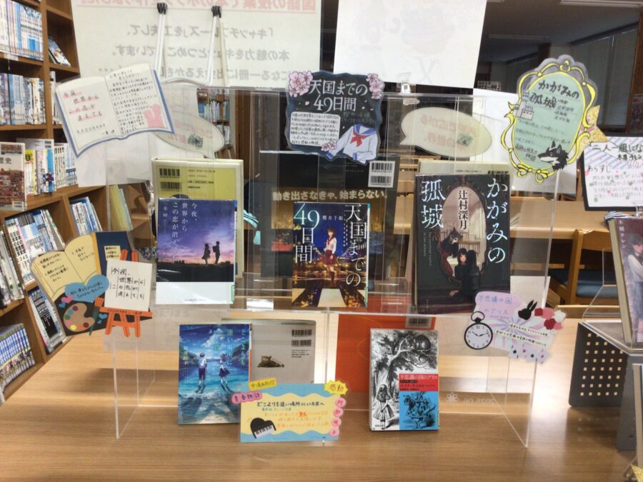 一方、高梁中学校の図書委員が作成した「推し本ポップ」も本校へ届きました。本校図書室入口付近で展示公開しています。中学生ならではの視点や、純粋な“好き”が詰まった紹介文は、読んでいるこちらまで引き込まれる魅力があります。