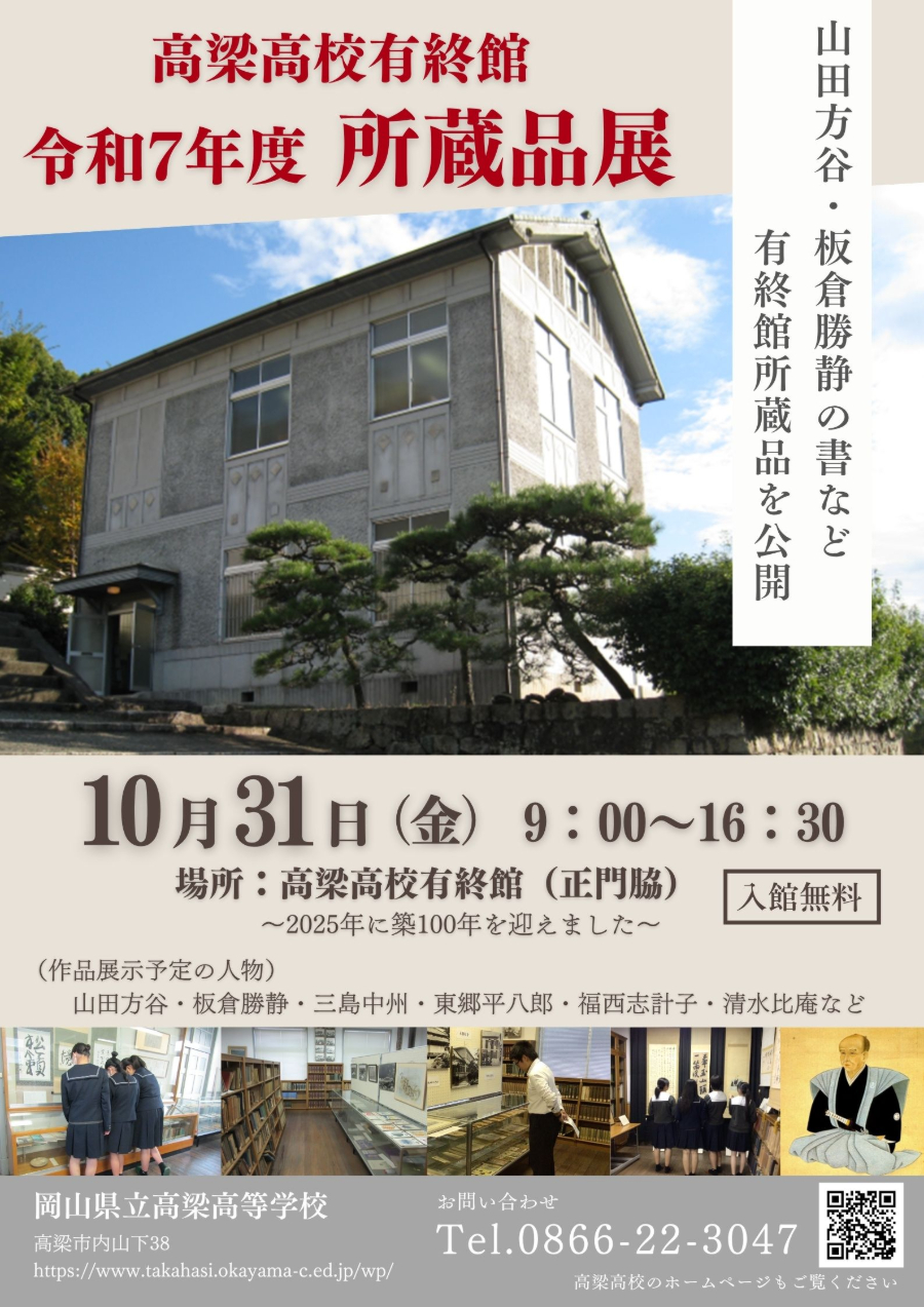 令和7年度「おかやま教育週間」_10/31(金)高梁高校有終館所蔵品展2025開催!