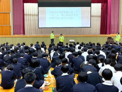 講演では、DV(ドメスティック・バイオレンス)を題材にした寸劇(ロールプレイ)も行われ、登場人物の立場や気持ちを通して「相手を思いやること」「自分も他者も大切にすること」について考えるきっかけとなりました。