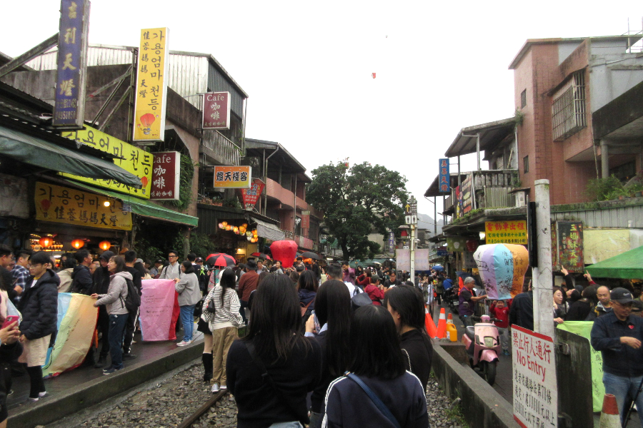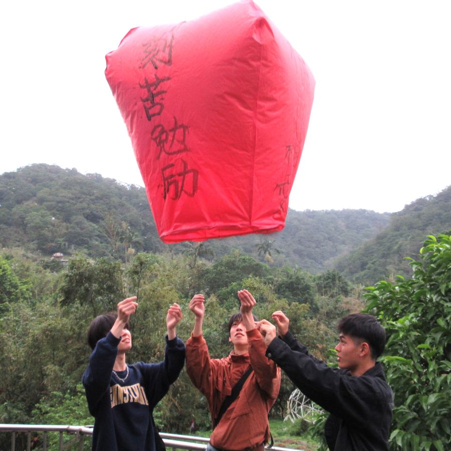 午後は、願いを空に託す体験として有名な十分での天燈上げへ。色とりどりの天燈にそれぞれの願いを書き込み、空へと放ちます。ゆっくりと空高く舞い上がっていく天燈を見つめながら、静かに祈りました。