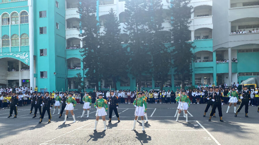 校門をくぐり、最初に目に飛び込んできたのは、儀仗隊による迫力満点の歓迎パフォーマンス!