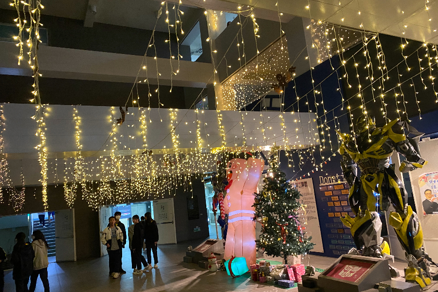 校舎玄関の美しいクリスマス装飾を鑑賞した後は、