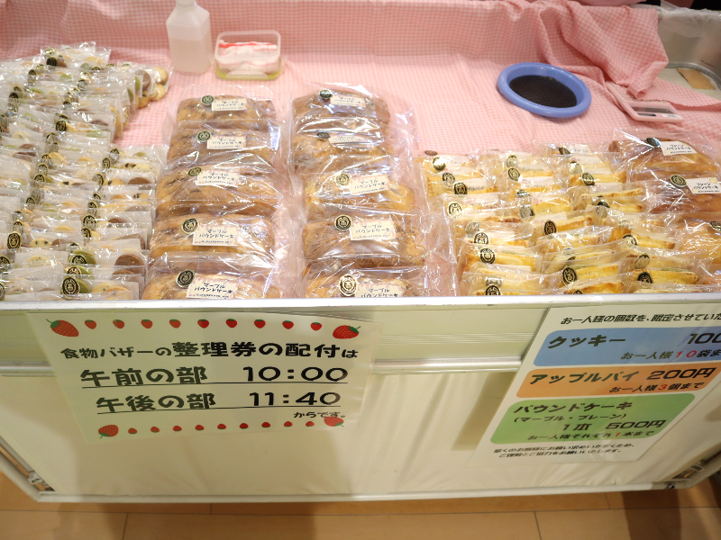 食物バザーでは、クッキー・パウンドケーキ・アップルパイを販売。どの商品も大好評で、なんと完売御礼!たくさんの方に美味しい焼き菓子をお渡ししました。