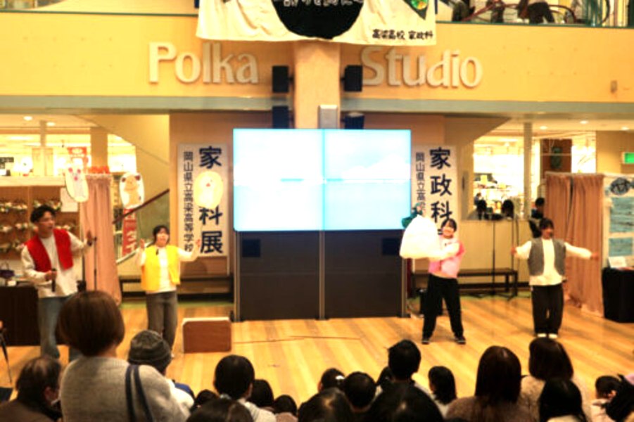 1月23日・24日の2日間、ポルカ天満屋ハピータウン セントラルコートにて、家政科展を開催しました。この家政科展は、生徒たちがこれまで積み重ねてきた学習の成果を、来場者の皆さんに直接見ていただく大切な発表の場です。
