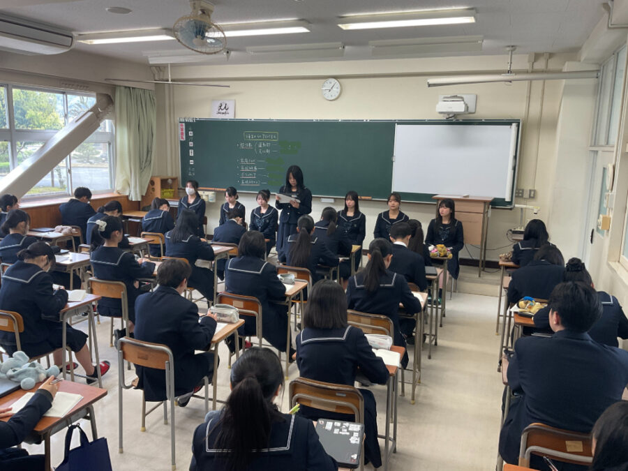 この取り組みは、家政科・普通科それぞれの3年次生が、1年次生に向けて高校生活について語る貴重な機会です。