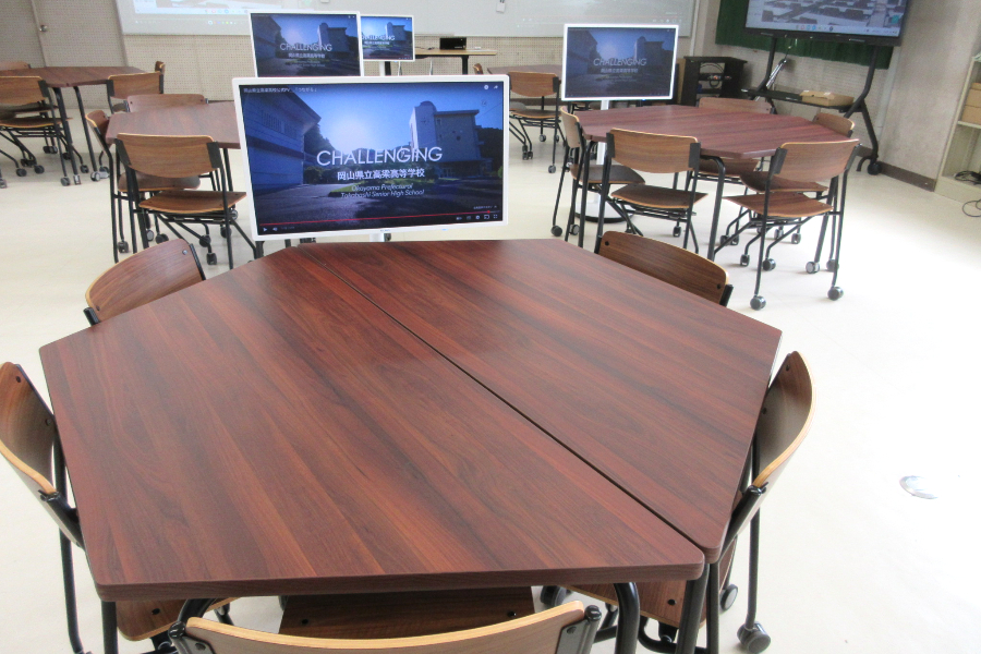どの席からでも見やすく、発表形式も柔軟に変えられるよう設計されています。教室全体がまるでステージのように活用できるため、発表会やシンポジウムもスムーズに実施できます。