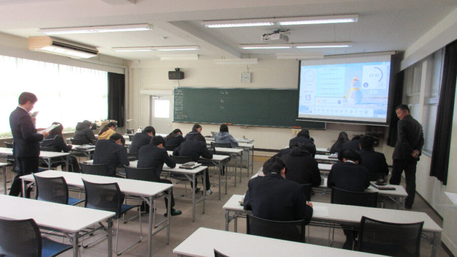 1月13日(火)6限、本校の大講義室にて、英語科・流尾卓志指導教諭による公開授業が行われました。対象は2年2組、科目は「論理・表現Ⅱ」。教室にはほどよい緊張感と学びへの期待感が漂っていました。
