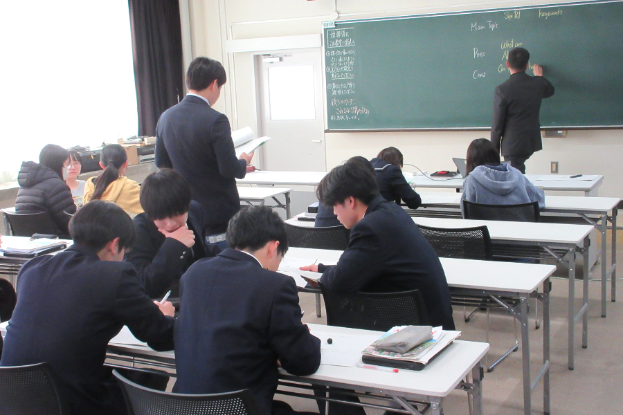 完成したLogic Mapをもとに、今度は手書きで要約文を作成。自分の頭で考え、言葉を選び取るプロセスが大切にされていました。