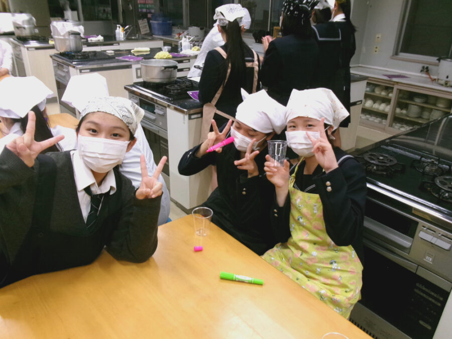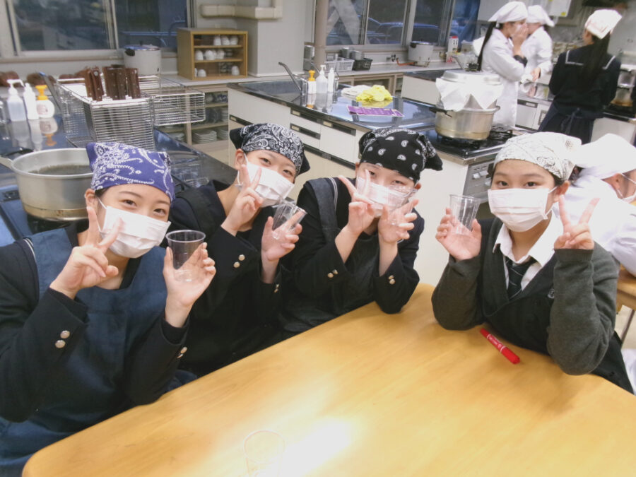 この日は、家政科の生徒だけでなく、普通科の生徒も多数参加!グループごとに協力しながら生地を混ぜ、蒸し上がりを待つ時間には笑顔があふれました。みんなで協力して作った蒸しパンを囲みながら、秋の味覚と温かい交流を楽しむことができました。