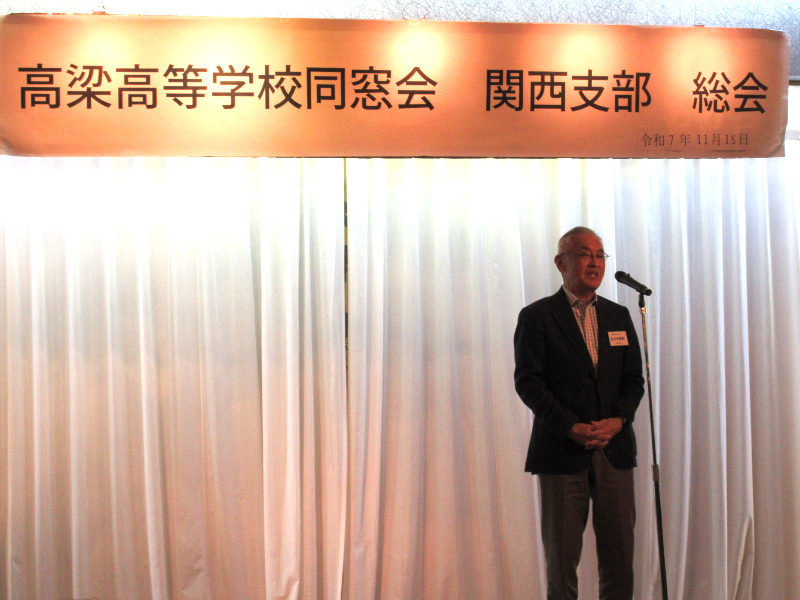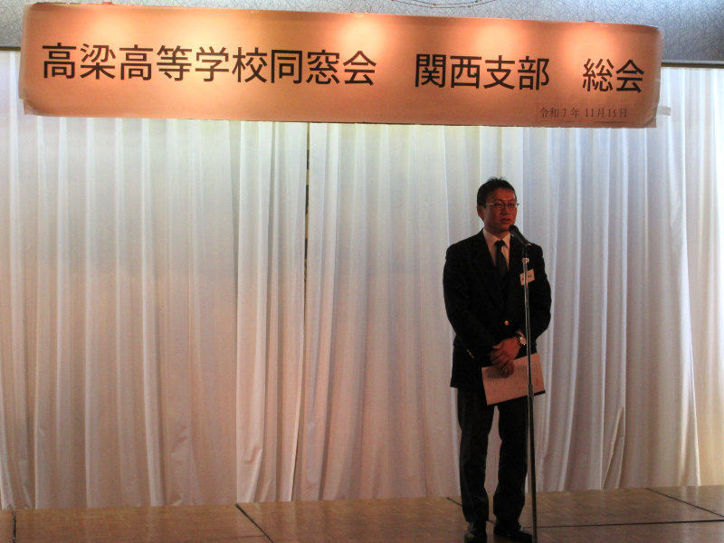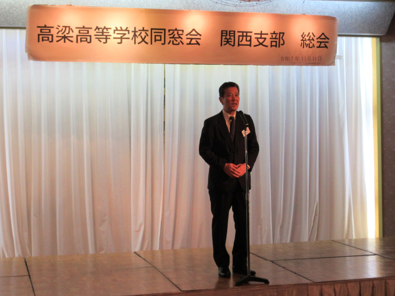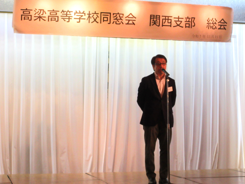 第1部では、関西支部長、新支部長、新幹事の皆さま、そして同窓会会長、校長からと挨拶が続きました。