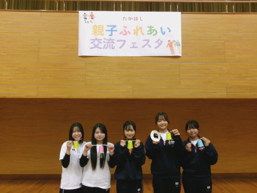 11月24日(月)、高梁市教育委員会主催「親子ふれあいフェスタ」に家庭クラブ総務委員と2年次保育実践選択者有志が参加しました。