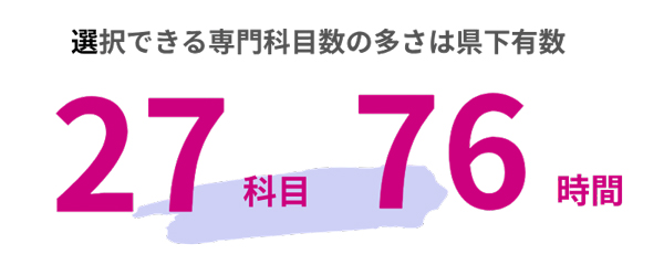 カリキュラムの赤字部分は家庭科の専門科目です。スペースの都合で掲載できなかった選択科目もあります。